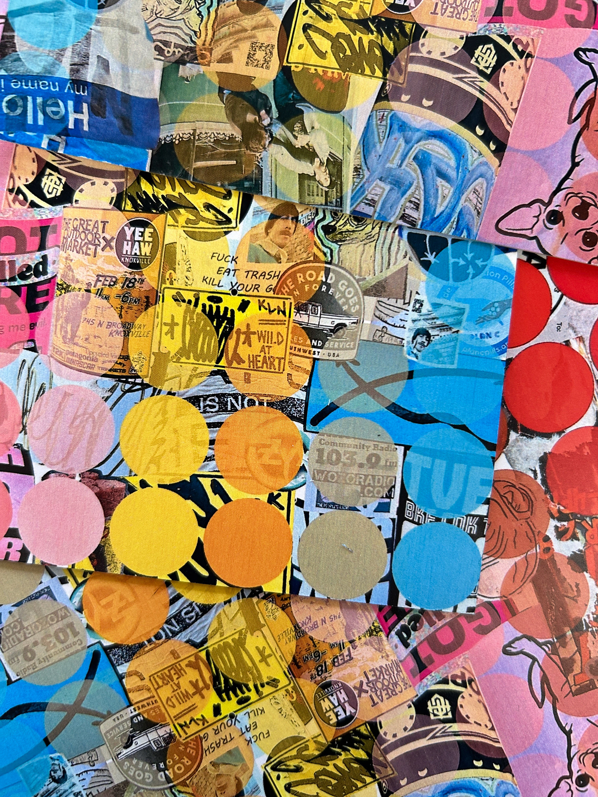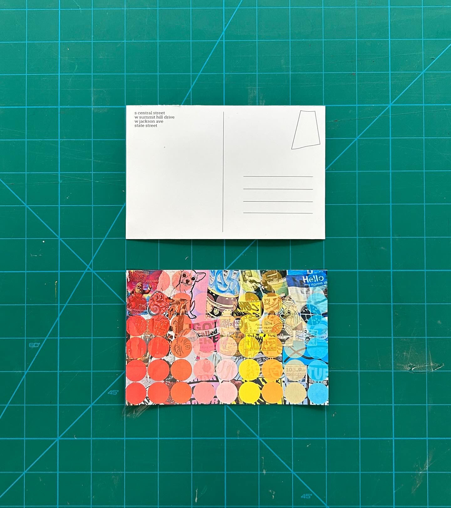 I walked around a block in Knoxville's Old City gathering images of all the stickers and different color doors I saw. I used this info to create a postcard visualizing this data.